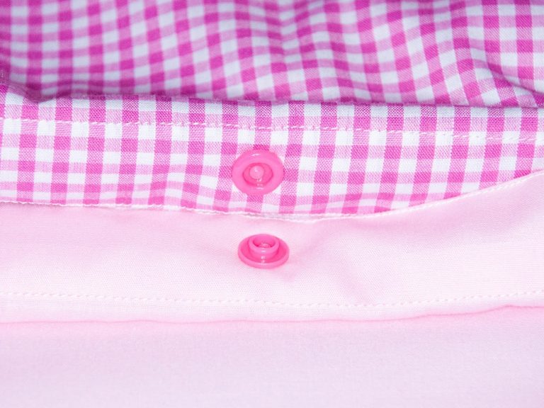 The poppers are carefully colour-coded to match the material, ensuring a seamless, cohesive look and a higher-quality, fully considered finish.